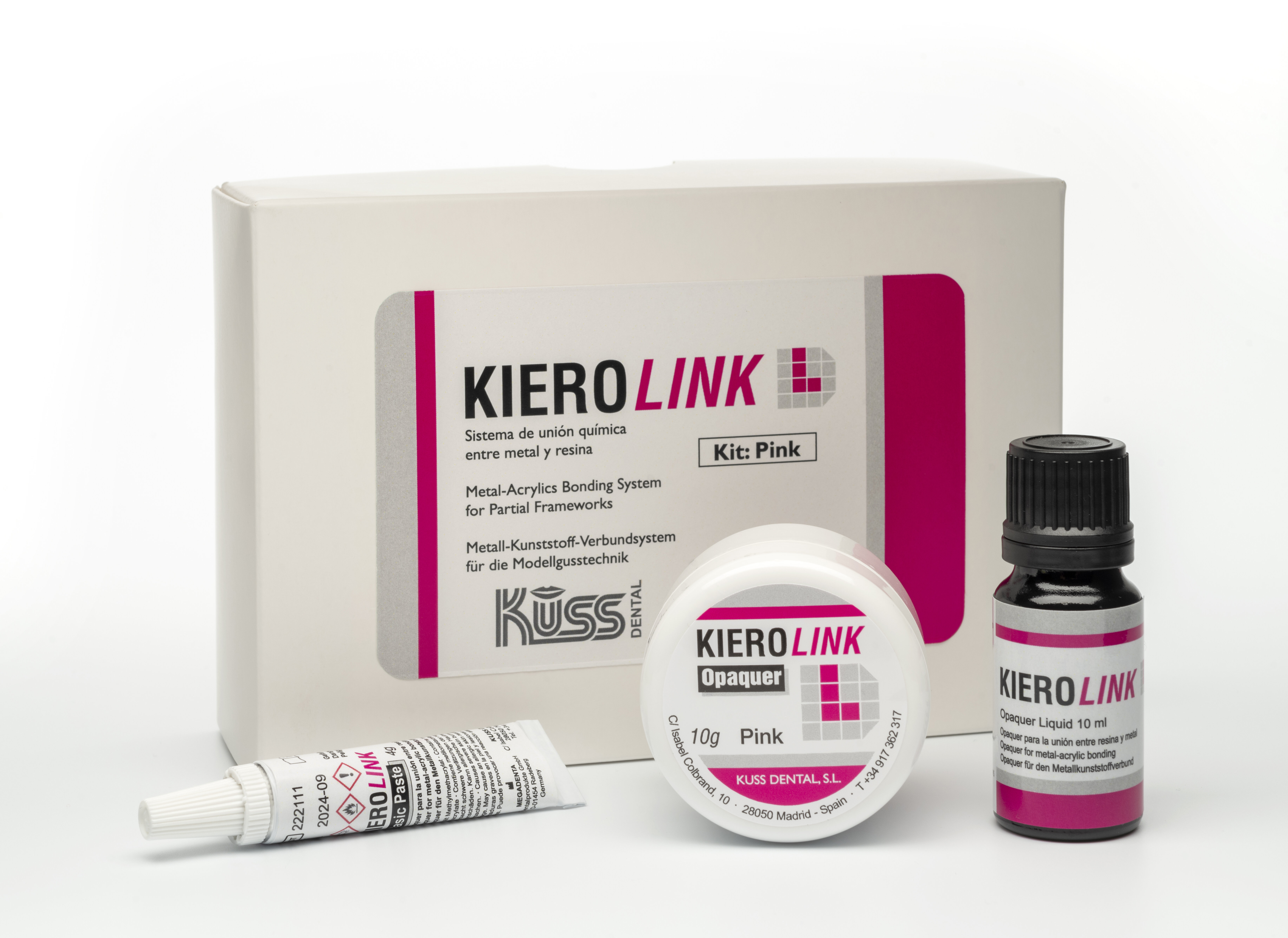 Lichthärtender Metall-Kunststoff VerbundDer Xthetic® opaker (KIERO Link) gewährleistet einen dauerhaften Verbund ohne Randspalt, sowie hervorragende Haftwerte bei Druck-, Scher- und Zugbelastung. Keine thermische Belastung des Metallgerüstes. In jedem leistungsstarken oder -schwachen Lichtgerät polymerisierbar (320-400 nm).